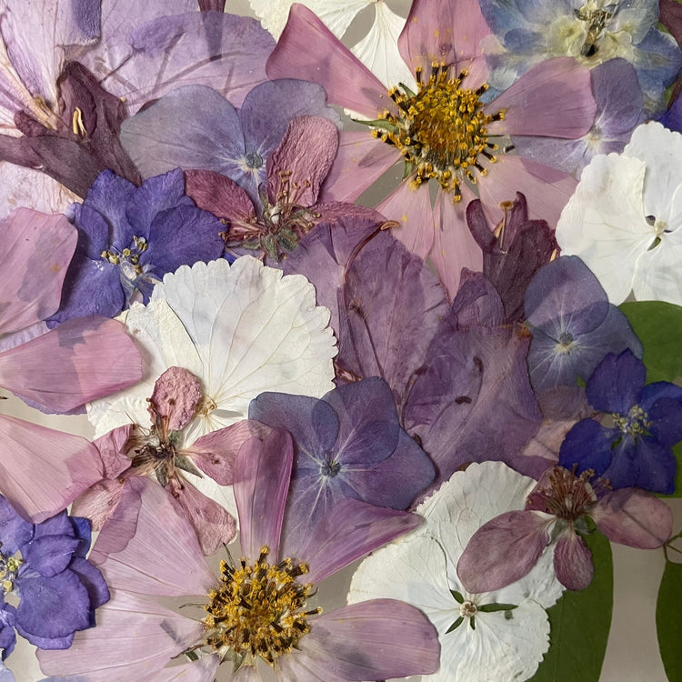 The flowers and plants used are real, hand-picked and gently pressed to preserve their natural structure, softness and color. 🌿 They are then delicately arranged into a unique composition - each painting is original, no two pieces are the same.