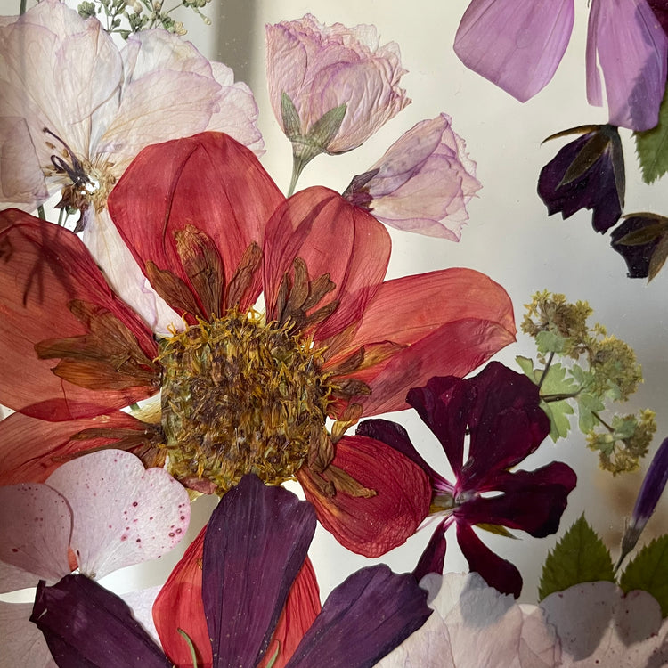 The flowers and plants used are real, hand-picked and gently pressed to preserve their natural structure, softness and color. 🌿 They are then delicately arranged into a unique composition - each painting is original, no two pieces are the same.