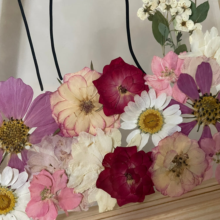 Used The flowers and plants are real, hand-picked and gently pressed to preserve their natural structure, softness and color. 🌿 They are then delicately arranged into a unique composition - each painting is an original, no two pieces are the same.