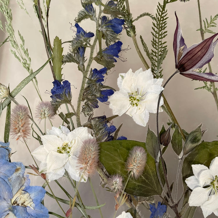 The flowers and plants used are real, hand-picked and gently pressed to preserve their natural structure, softness and color. 🌿 They are then delicately arranged into a unique composition - each painting is original, no two pieces are the same.