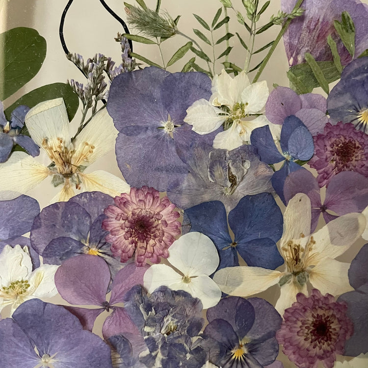 The flowers and plants used are real, hand-picked and gently pressed to preserve their natural structure, softness and color. 🌿 They are then delicately arranged into a unique composition - each painting is original, no two pieces are the same.