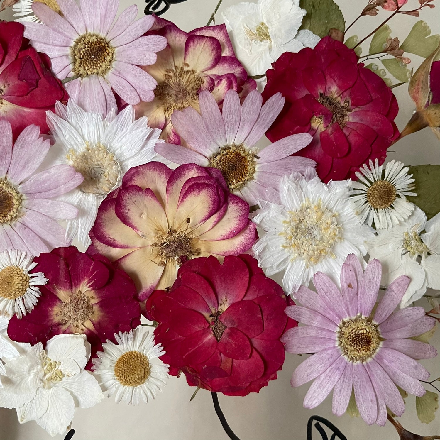 Used The flowers and plants are real, hand-picked and gently pressed to preserve their natural structure, softness and color. 🌿 They are then delicately arranged into a unique composition - each painting is an original, no two pieces are the same.
