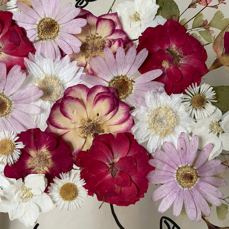 That's exactly what our paintings are. We believe in originality and quality, which is why each of our paintings is an original made from real pressed local flowers framed in handmade solid wooden frames.