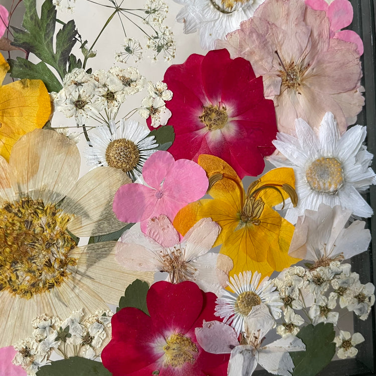 The flowers and plants used are real, hand-picked and gently pressed to preserve their natural structure, softness and color. 🌿 They are then delicately arranged into a unique composition - each painting is original, no two pieces are the same.