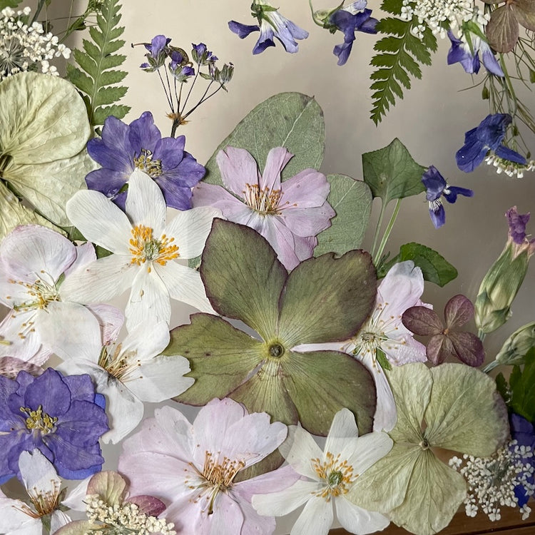 The flowers and plants used are real, hand-picked and gently pressed to preserve their natural structure, softness and color. 🌿 They are then delicately arranged into a unique composition - each painting is original, no two pieces are the same.