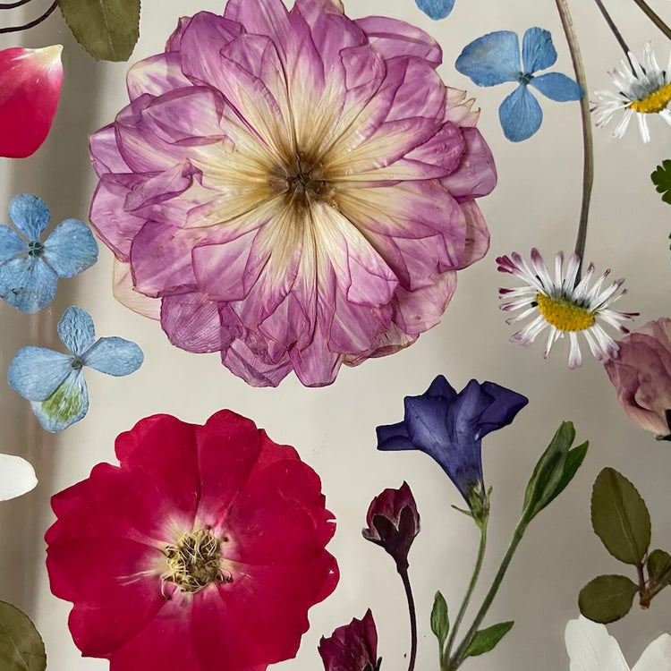 The flowers and plants used are real, hand-picked and gently pressed to preserve their natural structure, softness and color. 🌿 They are then delicately arranged into a unique composition - each painting is original, no two pieces are the same.