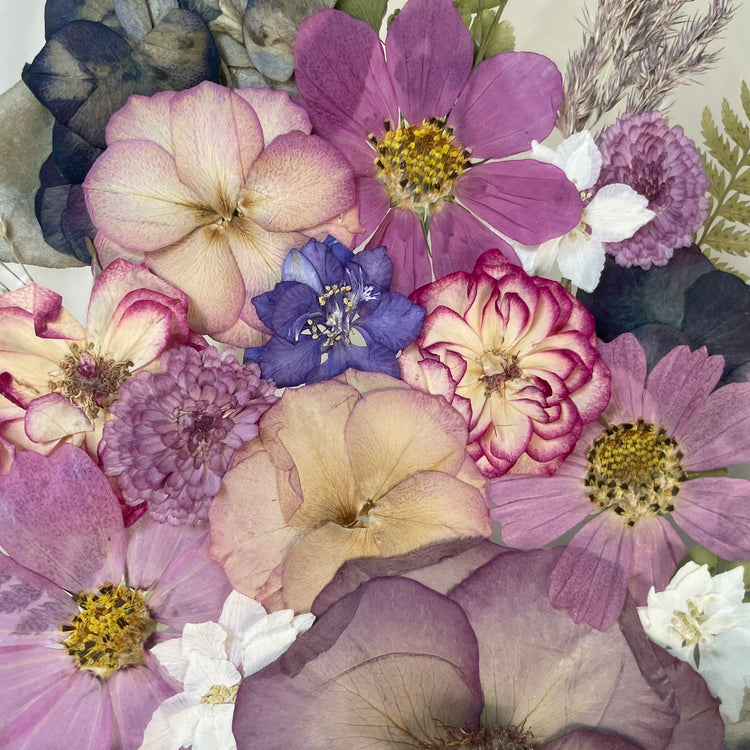 Used The flowers and plants are real, hand-picked and gently pressed to preserve their natural structure, softness and color. 🌿 They are then delicately arranged into a unique composition - each painting is an original, no two pieces are the same.