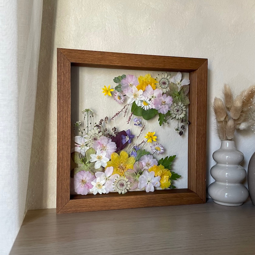 That's exactly what our paintings are. We believe in originality and quality, which is why each of our paintings is an original made from real pressed local flowers framed in handmade solid wooden frames.