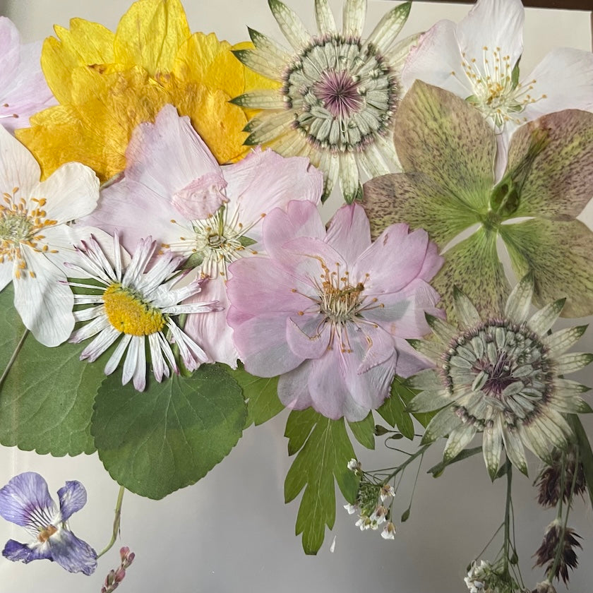 The flowers and plants used are real, hand-picked and gently pressed to preserve their natural structure, softness and color. 🌿 They are then delicately arranged into a unique composition - each painting is original, no two pieces are the same.