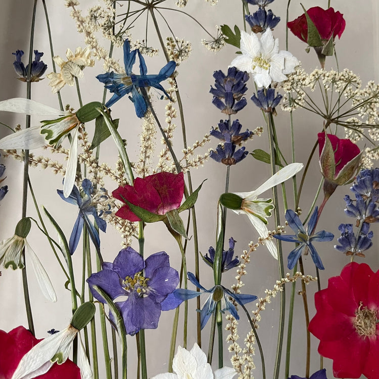 The flowers and plants used are real, hand-picked and gently pressed to preserve their natural structure, softness and color. 🌿 They are then delicately arranged into a unique composition - each painting is original, no two pieces are the same.