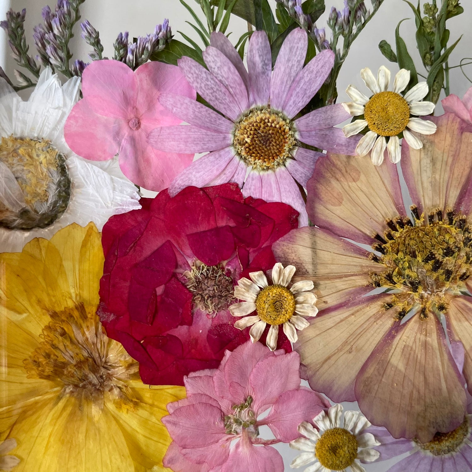 Used The flowers and plants are real, hand-picked and gently pressed to preserve their natural structure, softness and color. 🌿 They are then delicately arranged into a unique composition - each painting is an original, no two pieces are the same.