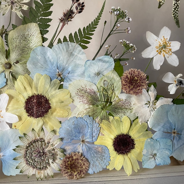 The flowers and plants used are real, hand-picked and gently pressed to preserve their natural structure, softness and color. 🌿 They are then delicately arranged into a unique composition - each painting is original, no two pieces are the same.