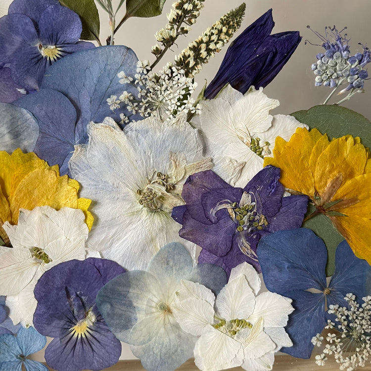 The flowers and plants used are real, hand-picked and gently pressed to preserve their natural structure, softness and color. 🌿 They are then delicately arranged into a unique composition - each painting is original, no two pieces are the same.