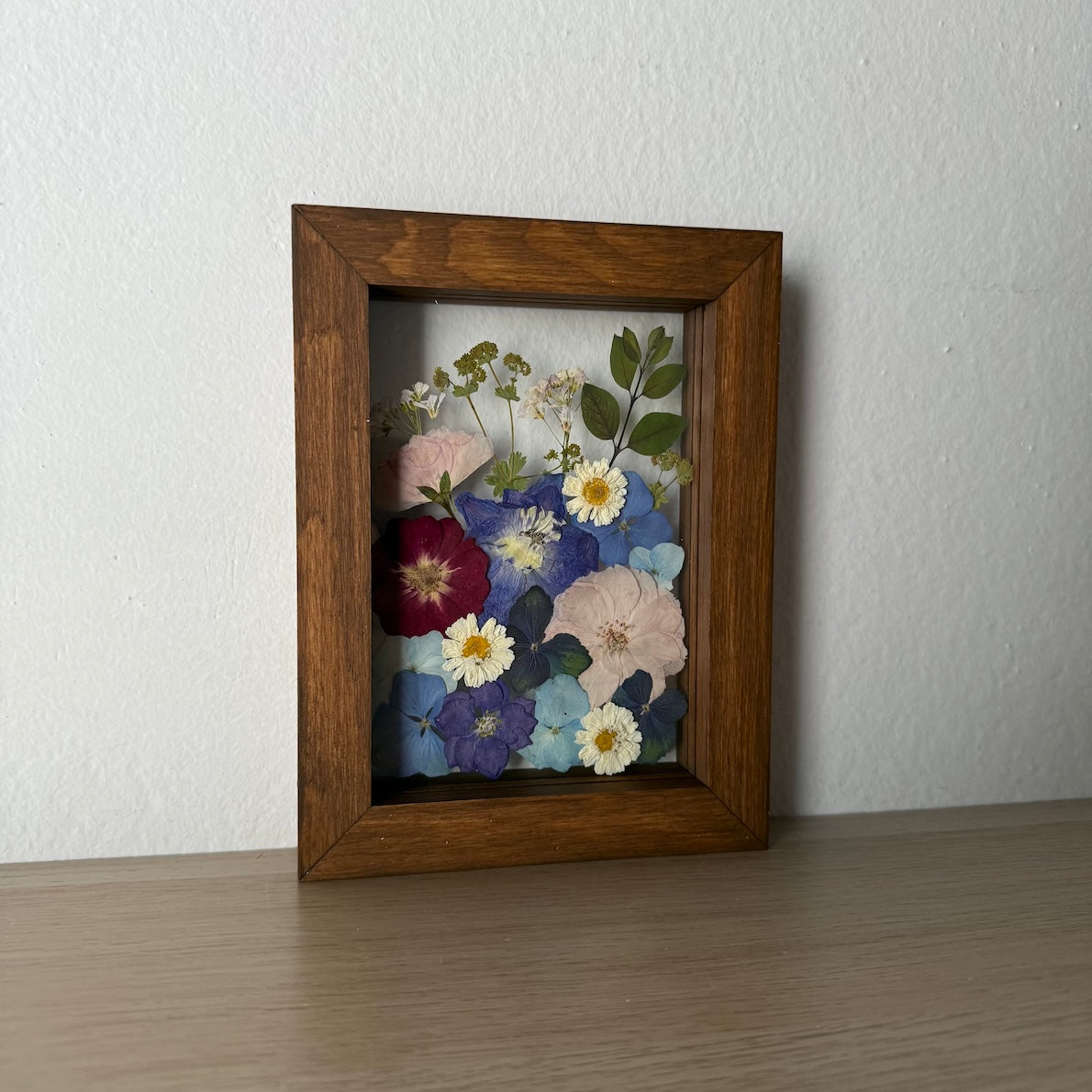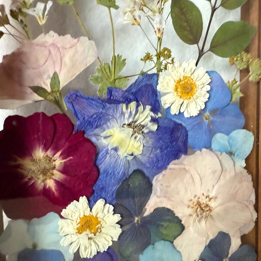 That's exactly what our paintings are. We believe in originality and quality, which is why each of our paintings is an original made from real pressed local flowers framed in handmade solid wooden frames.