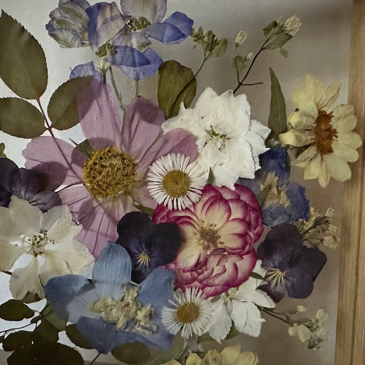 Used The flowers and plants are real, hand-picked and gently pressed to preserve their natural structure, softness and color. 🌿 They are then delicately arranged into a unique composition - each painting is an original, no two pieces are the same.