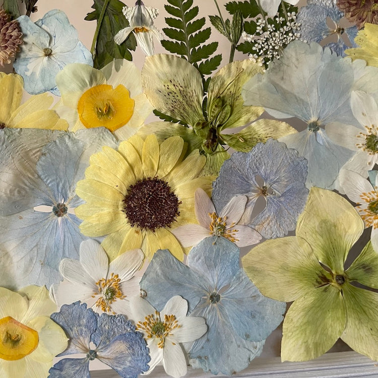The flowers and plants used are real, hand-picked and gently pressed to preserve their natural structure, softness and color. 🌿 They are then delicately arranged into a unique composition - each painting is original, no two pieces are the same.